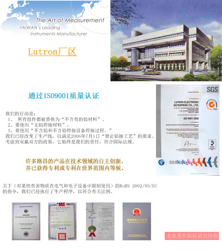 臺灣路昌電子企業(yè)有限公司成立于1976年,并已在測試和測量儀器等領域的超過三十年,臺灣的領先制造商。目前,大約有100個公司的員工,工廠的建設規(guī)模約為6,410 /六九○○○英尺平方米。