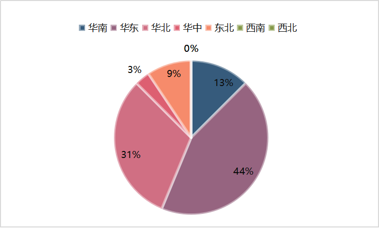 從地區(qū)分布來(lái)看,2020全年反應(yīng)釜采購(gòu)主體主要集中在華東地區(qū),約為53%,其次是東北地區(qū),占比約為29%,華北和華中地區(qū)較為薄弱,而西南和西北地區(qū)2020年全年有關(guān)反應(yīng)釜的招標(biāo)采購(gòu)為0。