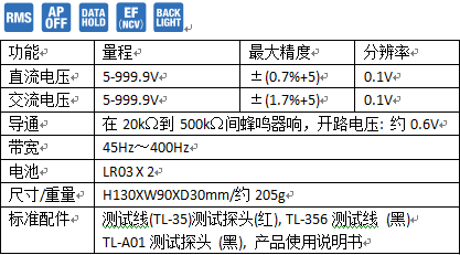 ■ 接觸和非接觸式電壓檢測功能,檢查電線是否斷線并有蜂鳴器提示