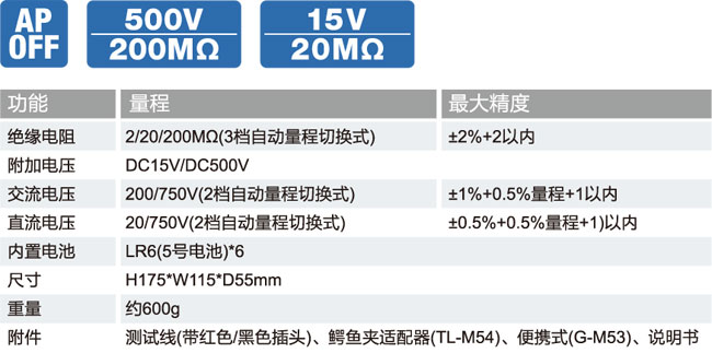 ■ 檢測電壓DC15V/500V