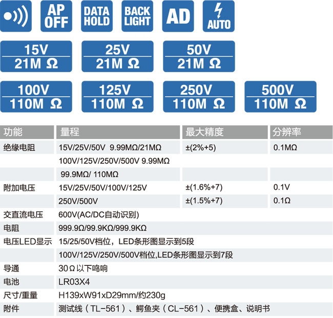 日本三和(sanwa)HG561H絕緣測試儀,小型便攜式,多量程絕緣電阻計,用于測量發(fā)電機、馬達、電源變壓器、配線、電器和其它電氣裝置(如控制、信號、通信和電源的電纜)的絕緣電阻。