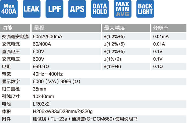 ■ 漏電流最大600mA,最高分辨率0.01mA