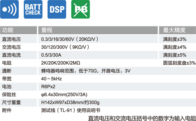 ■ 具有測量交直流電壓、直流電流、電阻和通斷功能