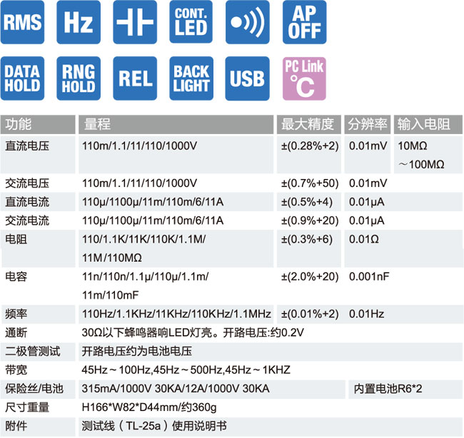 ■ 標(biāo)配鍍金表筆,防腐、防接觸不良,提高測(cè)量的精度