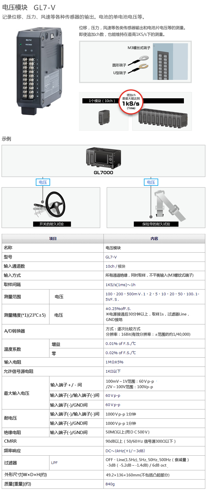 GL7-V電壓模塊是GL7000數(shù)據(jù)采集系統(tǒng)專用模塊,以下是GL7-V電壓模塊的產(chǎn)品特點(diǎn)和選型指導(dǎo)。