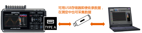 將2GB內(nèi)置閃存&USB存儲(chǔ)器作為外部存儲(chǔ)媒體,長時(shí)間収錄亦可放心測定