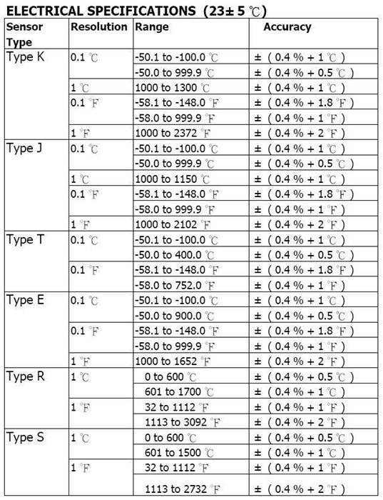 ☆榮獲多國專利最新產(chǎn)品:臺、中、美、日、德專利 ☆SD卡單機(jī)12頻道溫度記錄功能 ☆可使用TypeJ/K/T/E/R/S熱偶探棒測溫 ☆最大值/最小值顯示功能 ☆附贈(zèng)2G記憶SD卡,可紀(jì)錄數(shù)百萬筆數(shù)據(jù) ☆采用大型LCD背光銀幕 ☆同畫面顯示8頻道實(shí)時(shí)溫度 ☆紀(jì)錄值可同時(shí)紀(jì)錄年月日時(shí)分秒 規(guī)格: 1.可使用一般SD記憶卡:1-16G2.RS-232/USB連接接口(軟件選購)3.尺寸:225×125×64mm4.分辨率:1/0.1℃5.自動(dòng)紀(jì)錄:紀(jì)錄時(shí)間2秒-3600秒可設(shè)定6.手動(dòng)紀(jì)錄:實(shí)時(shí)記錄數(shù)據(jù)7.使用電源:交流電、電池(使用時(shí)間8-10小時(shí))☆溫度量測范圍及精度(K TYPE) -50.1→-100.0℃±(0.4%+1℃) -50.0→999.9℃ ±(0.4%+0.5℃) 1000→1300℃ ±(0.4%+1℃) |
