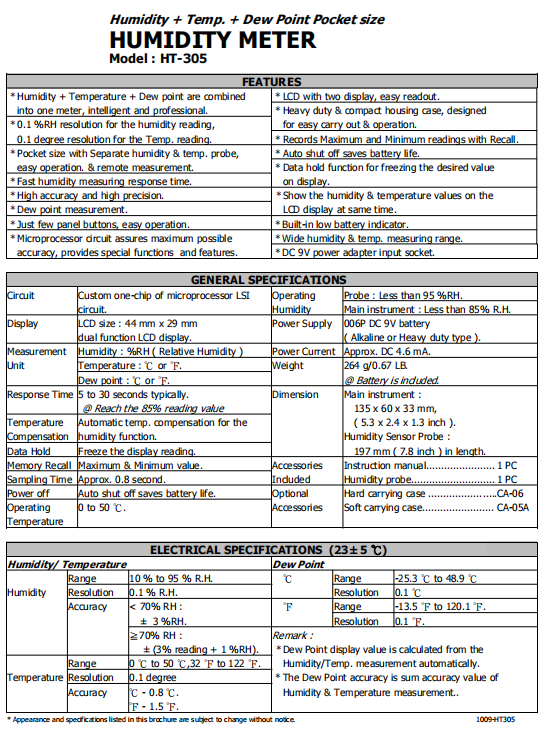 HT-305 溫濕度+露點(diǎn)儀