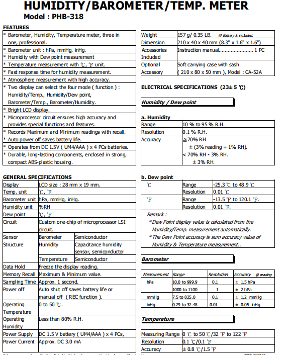 本網頁所展示的有關【路昌LUTRON PHB-318 溫度|濕度|露點儀】的信息/圖片/參數(shù)等由的會員【臺灣路昌LUTRON-深圳柏萊科技有限公司