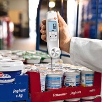 testo 104-IR配備精確的2點(diǎn)瞄準(zhǔn)激光,光學(xué)分辨率10:1,測量范圍清晰可見,可隨時進(jìn)行快速并精確的表面溫度測量。二合一溫度測量儀特別適用于食品進(jìn)貨檢測以及快速檢測單個或整箱食品的表面溫度。