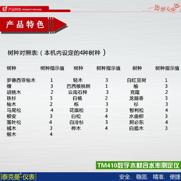 數(shù)字式測量,具有4樹種選擇功能。