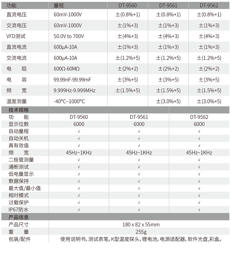 本網(wǎng)頁所展示的有關(guān)【華昌盛 DT-9560/9561/9562工業(yè)級6000位真有效值數(shù)字萬用表】的信息/圖片/參數(shù)等由的會(huì)員【華盛昌CEM-深圳柏萊科技有限公司 】提供,由柏萊儀器網(wǎng)-專業(yè)銷售儀器儀表服務(wù)商-深圳柏萊科技有限公司會(huì)員【華盛昌CEM-深圳柏萊科技有限公司 】自行對信息/圖片/參數(shù)等的真實(shí)性、準(zhǔn)確性和合法性負(fù)責(zé),本平臺(本網(wǎng)站)僅提供展示服務(wù),請謹(jǐn)慎交易,因交易而產(chǎn)生的法律關(guān)系及法律糾紛由您自行協(xié)商解決,本平臺(本網(wǎng)站)對此不承擔(dān)任何責(zé)任。您在本網(wǎng)頁可以瀏覽【華昌盛 DT-9560/9561/9562工業(yè)級6000位真有效值數(shù)字萬用表】有關(guān)的信息/圖片/價(jià)格等及提供 【華昌盛 DT-9560/9561/9562工業(yè)級6000位真有效值數(shù)字萬用表】的商家公司簡介、聯(lián)系方式等信息。