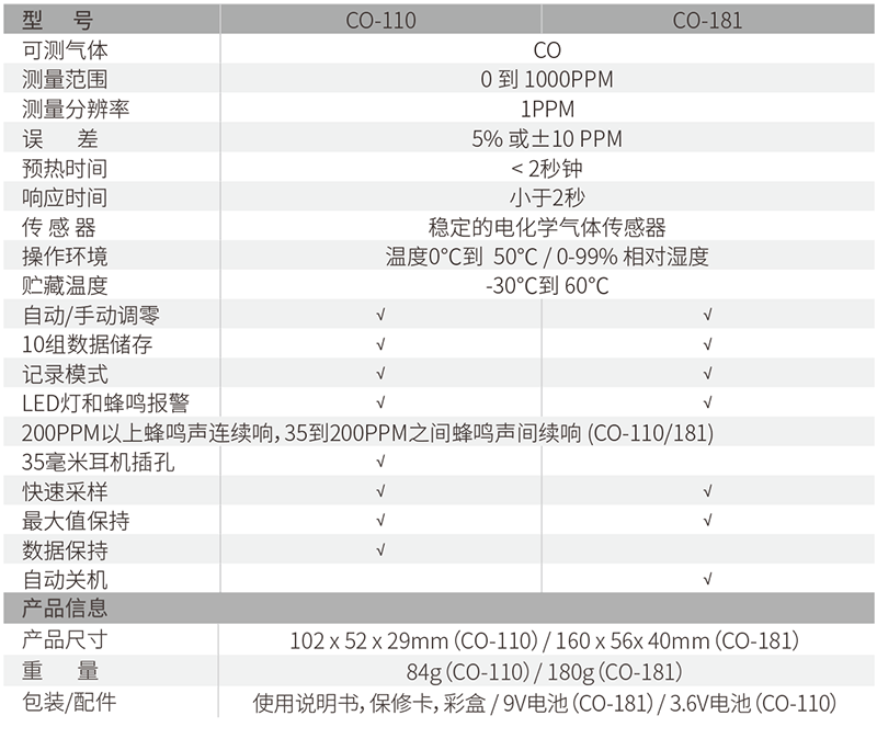 CO-110通過三種方式來顯示一氧化碳的存在: