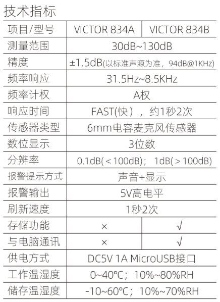 VICTOR834A/834B是一款大屏幕噪音計(jì),用于測(cè)量環(huán)境噪音的儀表,大屏幕顯示,單字