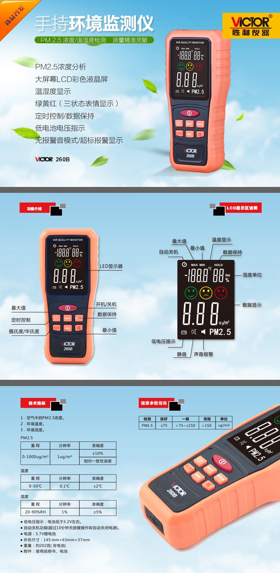 本網(wǎng)頁所展示的有關(guān)【VICTOR 260B手持環(huán)境監(jiān)測儀PM2.5檢測】的信息/圖片/參數(shù)等由的會(huì)員【勝利victor-深圳柏萊科技有限公司 】提供,由柏萊儀器網(wǎng)-專業(yè)銷售儀器儀表服務(wù)商-深圳柏萊科技有限公司會(huì)員【勝利victor-深圳柏萊科技有限公司 】自行對(duì)信息/圖片/參數(shù)等的真實(shí)性、準(zhǔn)確性和合法性負(fù)責(zé),本平臺(tái)(本網(wǎng)站)僅提供展示服務(wù),請(qǐng)謹(jǐn)慎交易,因交易而產(chǎn)生的法律關(guān)系及法律糾紛由您自行協(xié)商解決,本平臺(tái)(本網(wǎng)站)對(duì)此不承擔(dān)任何責(zé)任。您在本網(wǎng)頁可以瀏覽【VICTOR 260B手持環(huán)境監(jiān)測儀PM2.5檢測】有關(guān)的信息/圖片/價(jià)格等及提供 【VICTOR 260B手持環(huán)境監(jiān)測儀PM2.5檢測】的商家公司簡介、聯(lián)系方式等信息。