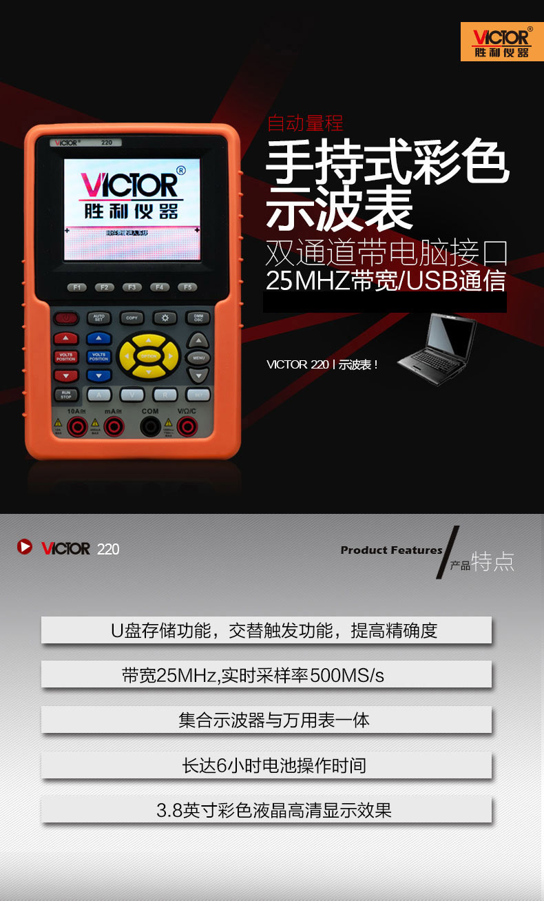本網(wǎng)頁所展示的有關(guān)【VICTOR 220雙通道手持式示波表】的信息/圖片/參數(shù)等由的會員【勝利victor-深圳柏萊科技有限公司 】提供,由柏萊儀器網(wǎng)-專業(yè)銷售儀器儀表服務(wù)商-深圳柏萊科技有限公司會員【勝利victor-深圳柏萊科技有限公司 】自行對信息/圖片/參數(shù)等的真實性、準(zhǔn)確性和合法性負(fù)責(zé),本平臺(本網(wǎng)站)僅提供展示服務(wù),請謹(jǐn)慎交易,因交易而產(chǎn)生的法律關(guān)系及法律糾紛由您自行協(xié)商解決,本平臺(本網(wǎng)站)對此不承擔(dān)任何責(zé)任。您在本網(wǎng)頁可以瀏覽【VICTOR 220雙通道手持式示波表】有關(guān)的信息/圖片/價格等及提供 【VICTOR 220雙通道手持式示波表】的商家公司簡介、聯(lián)系方式等信息。