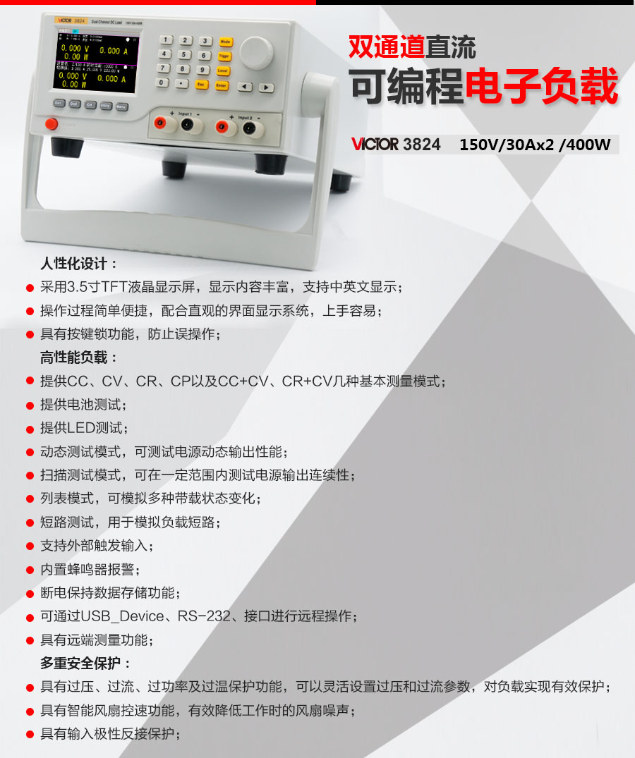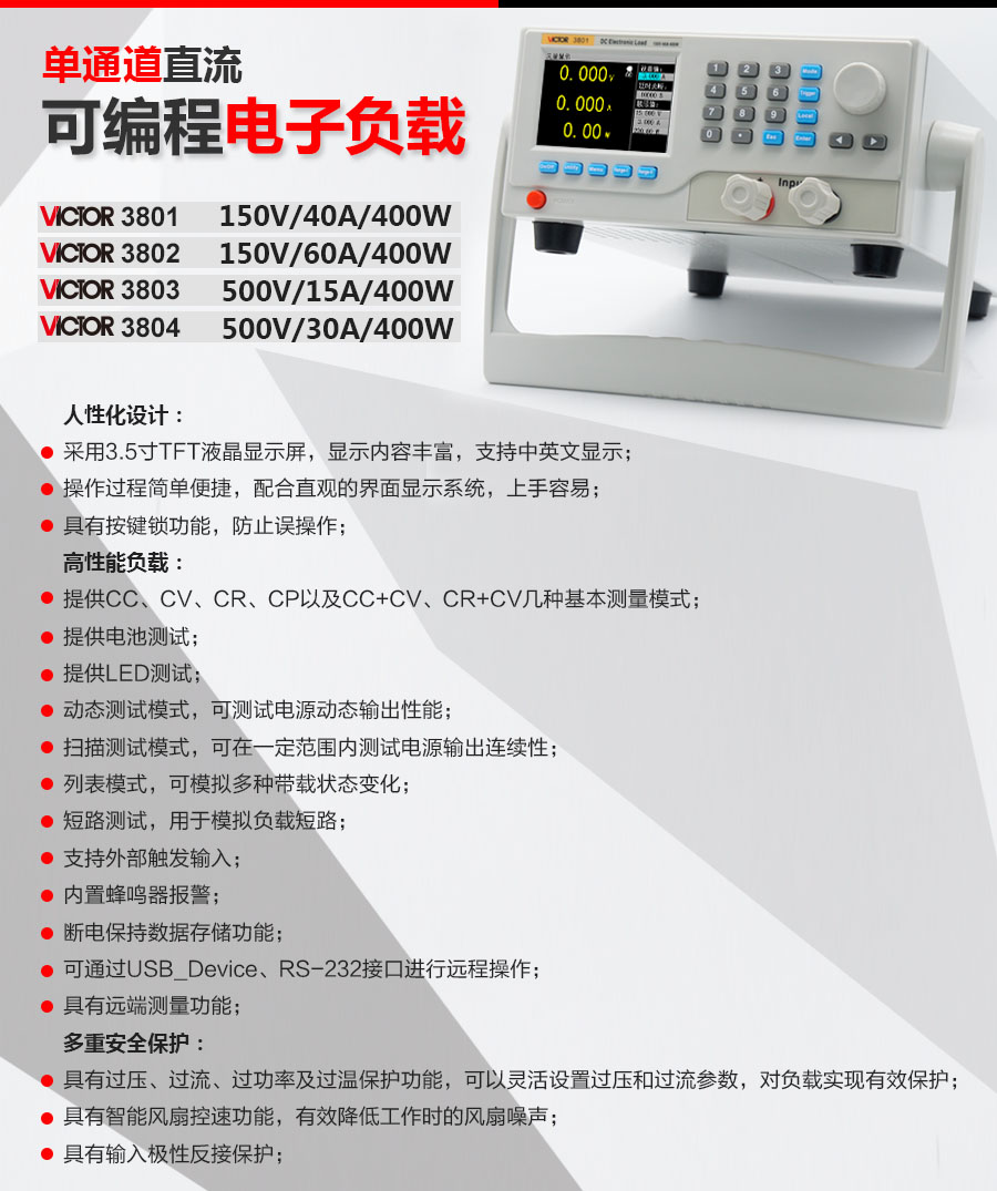 本網(wǎng)頁(yè)所展示的有關(guān)【VICTOR 3801/3802/3803/3804/3824直流可編程電子負(fù)載】的信息/圖片/參數(shù)等由的會(huì)員【勝利victor-深圳柏萊科技有限公司 】提供,由柏萊儀器網(wǎng)-專(zhuān)業(yè)銷(xiāo)售儀器儀表服務(wù)商-深圳柏萊科技有限公司會(huì)員【勝利victor-深圳柏萊科技有限公司 】自行對(duì)信息/圖片/參數(shù)等的真實(shí)性、準(zhǔn)確性和合法性負(fù)責(zé),本平臺(tái)(本網(wǎng)站)僅提供展示服務(wù),請(qǐng)謹(jǐn)慎交易,因交易而產(chǎn)生的法律關(guān)系及法律糾紛由您自行協(xié)商解決,本平臺(tái)(本網(wǎng)站)對(duì)此不承擔(dān)任何責(zé)任。您在本網(wǎng)頁(yè)可以瀏覽【VICTOR 3801/3802/3803/3804/3824直流可編程電子負(fù)載】有關(guān)的信息/圖片/價(jià)格等及提供 【VICTOR 3801/3802/3803/3804/3824直流可編程電子負(fù)載】的商家公司簡(jiǎn)介、聯(lián)系方式等信息。