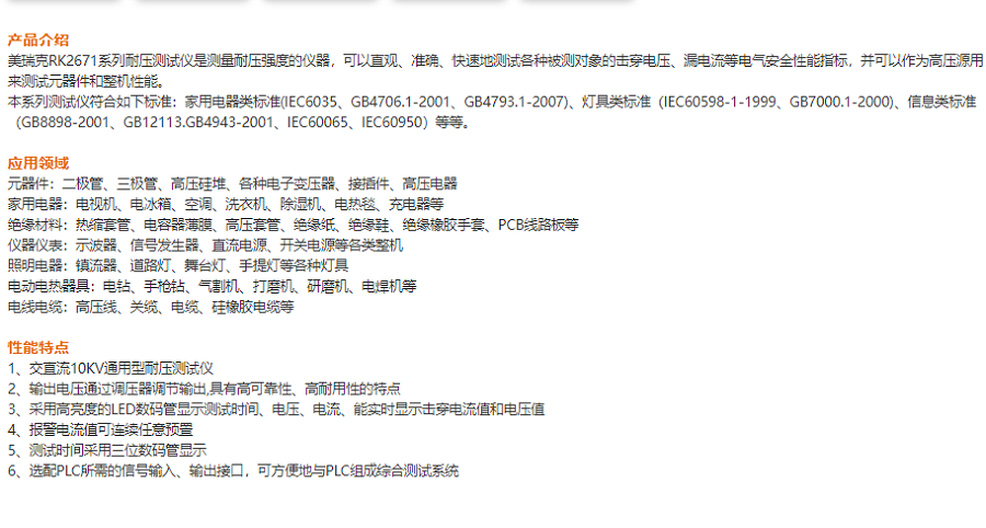 本網(wǎng)頁所展示的有關【RK2671AM耐壓測試儀 美瑞克】的信息/圖片/參數(shù)等由的會員【美瑞克-深圳柏萊科技有限公司 】提供,由柏萊儀器網(wǎng)-專業(yè)銷售儀器儀表服務商-深圳柏萊科技有限公司會員【美瑞克-深圳柏萊科技有限公司 】自行對信息/圖片/參數(shù)等的真實性、準確性和合法性負責,本平臺(本網(wǎng)站)僅提供展示服務,請謹慎交易,因交易而產(chǎn)生的法律關系及法律糾紛由您自行協(xié)商解決,本平臺(本網(wǎng)站)對此不承擔任何責任。您在本網(wǎng)頁可以瀏覽【RK2671AM耐壓測試儀 美瑞克】有關的信息/圖片/價格等及提供 【RK2671AM耐壓測試儀 美瑞克】的商家公司簡介、聯(lián)系方式等信息。