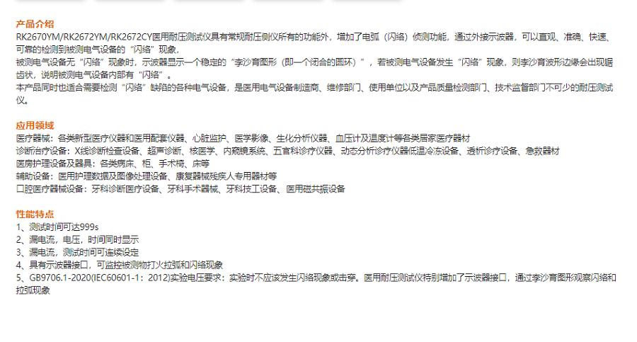 RK2670YM醫(yī)用耐壓測(cè)試儀 美瑞克RK2672YM
