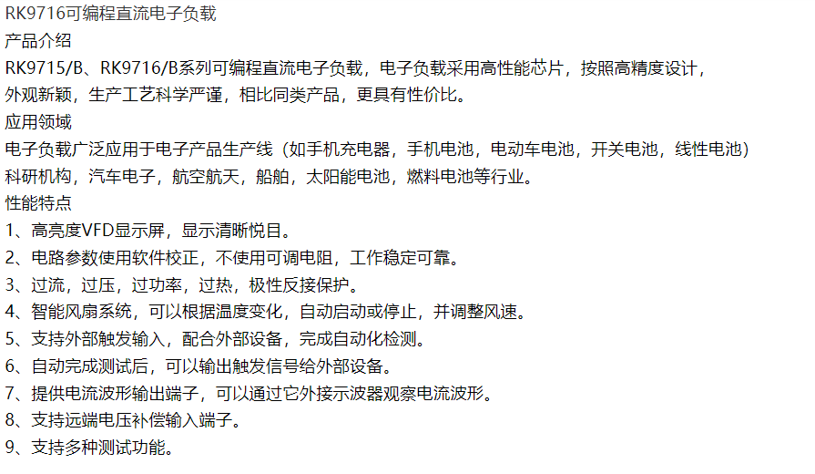 RK9716B可編程直流電子負(fù)載 美瑞克