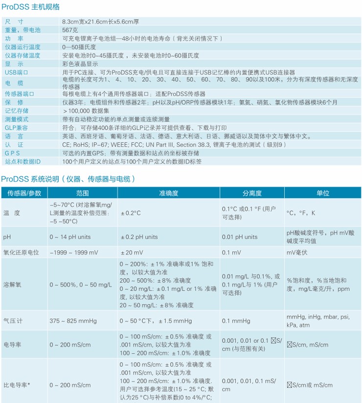 YSI ProDSS 便攜多參數(shù)水質(zhì)測量儀用于點(diǎn)測量和剖面測量pH、氧化還原電位、溶解氧。