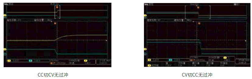 允許用自行設(shè)定ON時(shí)的輸出模式,防止電源輸出ON時(shí)的過沖。選擇CV優(yōu)先模式,電源優(yōu)先高速建立電壓的同時(shí)抑制電壓過沖的產(chǎn)生。選擇CC優(yōu)先模式,電源優(yōu)先高速建立電流的同時(shí)抑制電流過沖的產(chǎn)生。