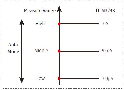 IT-M3200提供多檔位(Low/Middle/High/Auto)電流量程切換,分辨率高達(dá)10nA,滿足用戶從安培級(jí)別到微安級(jí)別的電流量測(cè)需求,尤其是Auto檔讓用戶無需手動(dòng)控制,即可實(shí)現(xiàn)高低電流量測(cè)的靈活切換。此功能適用于5G、可穿戴設(shè)備及其他低功耗領(lǐng)域測(cè)試。