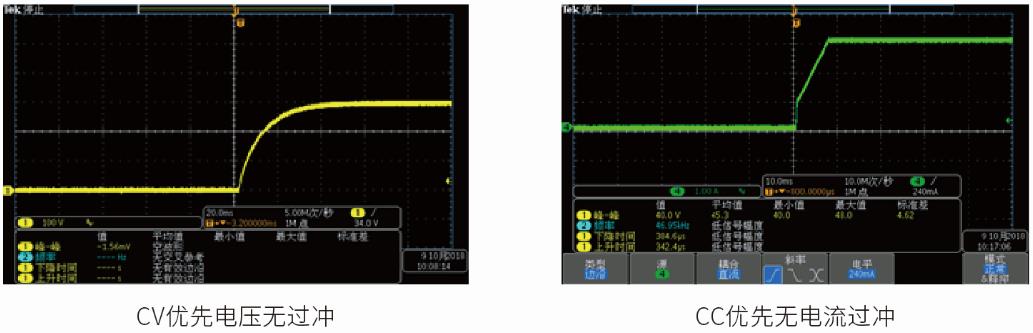 允許用自行設(shè)定電源ON時(shí)的輸出模式,防止電源輸出ON時(shí)的過(guò)沖。選擇CV優(yōu)先模式,電源優(yōu)先高速建立電壓的同時(shí)抑制電壓過(guò)沖的產(chǎn)生。選擇CC優(yōu)先模式,電源優(yōu)先高速建立電流的同時(shí)抑制電流過(guò)沖的產(chǎn)生。
