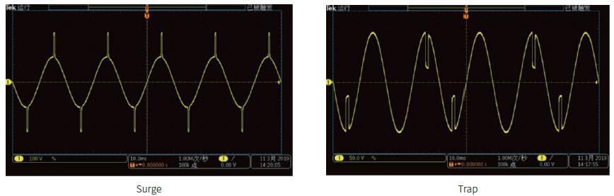 IT-M7700系列提供突波/陷波的模擬功能,用戶可以根據需求在輸出正弦波的基礎上加上突波/陷波來模擬電路系統(tǒng)中電壓的異常波動,從而測試待測物在此種環(huán)境下的使用情況。