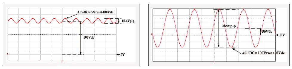 IT-M7700系列可以實現AC、DC、AC+DC各個輸出模式,不但提供純正的交/直流輸出、還可以提供AC+DC輸出模式來擴大應用,測試直流偏壓成份。
