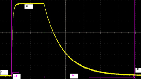 用戶可以用IT8800此功能來測試電壓上升/下降時間。進入config下的measure菜單,設置兩個電壓點。然后開啟時間顯示(display on timer)功能,測試完成后,屏幕上會顯示此上升/下降時間。對開關電源測試、保險絲測試來說,這個測試都是至關重要的。
