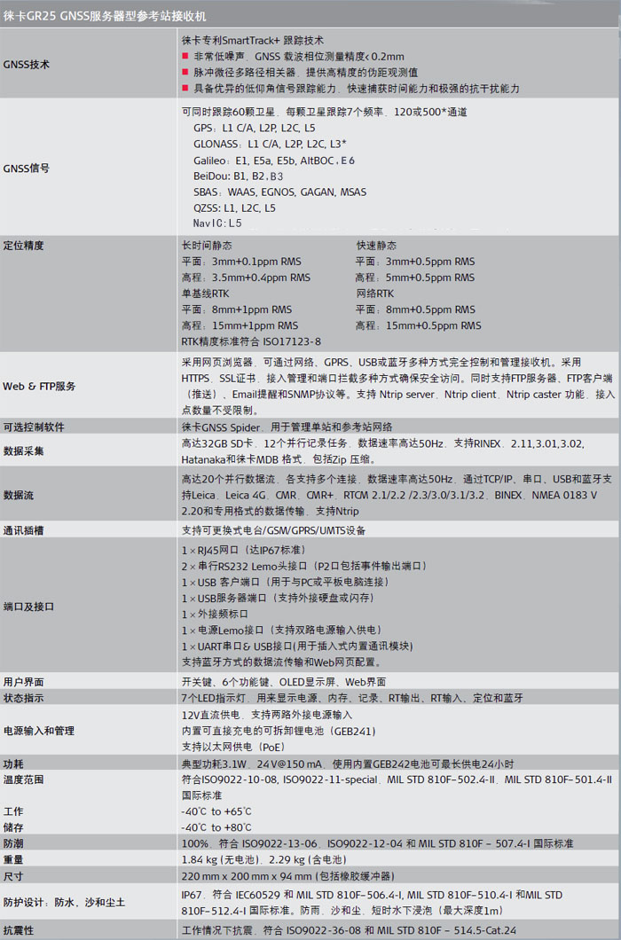 徠卡GR25服務器型參考站接收機 滿足更高的應用需求 徠卡GR25獨特的設計滿足高的應用需求,可在最惡劣的環(huán)境下使用。它的創(chuàng)新型安全設計為GNSS參考站網(wǎng)和基站運行提供一個高級、安全、可靠的運行系統(tǒng),始終滿足您的應用需求。 |