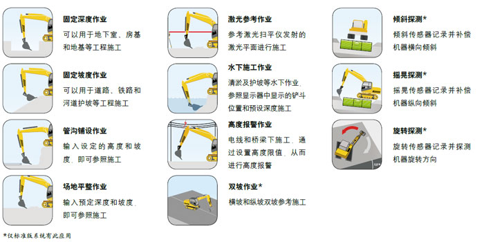 可視高度和坡度引導,提供參考高度和坡度等作業(yè)信息給操作手,使其在不可視施工環(huán)境中更直觀的工作;全新的施工方式,施工更容易,更高效;