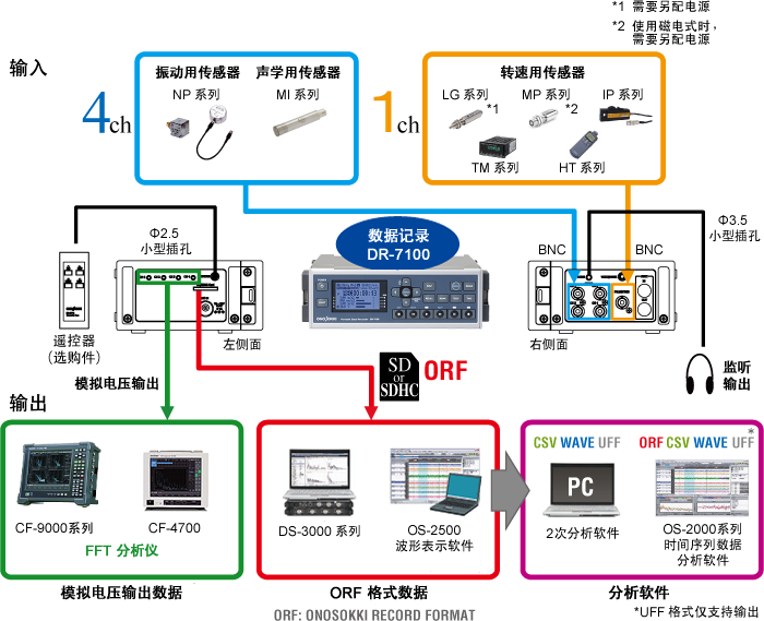 選購(gòu)件 | DR-072040 kHz記錄分析頻率量程擴(kuò)大功能DR-07302單元連接功能DR-07032單元連接功用電纜DR-0745AA濾波器開關(guān)功能 ※1DR-0711遙控器AX-501輸出用信號(hào)電纜 (2 m)BNC接頭←→小型插頭 (φ2.5)MX-101輸入用BNC信號(hào)電纜 (1.5 m)–AC電源適配器(ATS050T-A150)–AC電源適配器用電源電纜–車用蓄電池 (12 V) 連接用電源電纜 (5.4 m)–SDHC 存儲(chǔ)卡 (4 GB, 8 GB,16 GB,32 GB) ※2 |