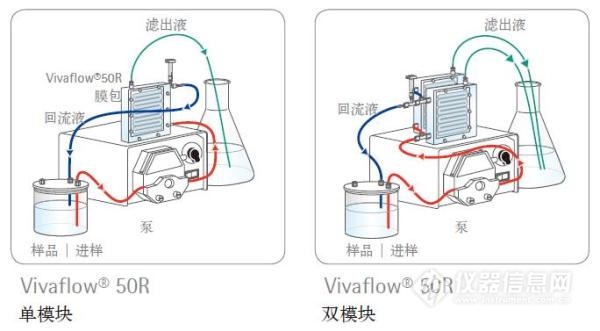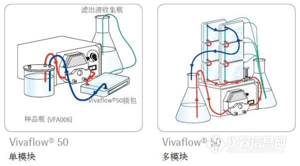 Vivaflow? 50R是一款可重復(fù)使用的切向流超濾膜包,采用獨特的低吸附改性再生纖維素膜Hydrosart。因此,該設(shè)備是濃縮病毒和抗體等昂貴樣品的理想選擇。兩塊Vivaflow? 50R膜包并聯(lián),可提高流速,有效濃縮1L樣品。