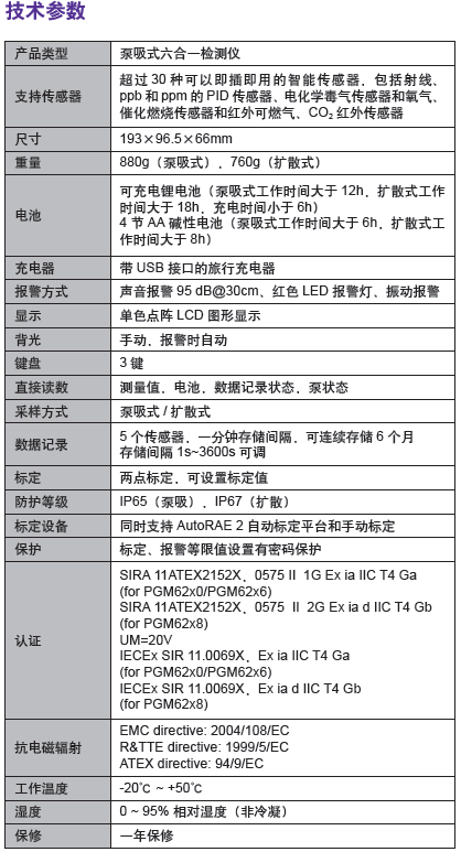 超過30種可以即插即用的智能傳感器,包括射線,ppb和ppm的PID傳感器,電化學(xué)毒氣和氧氣傳感器,