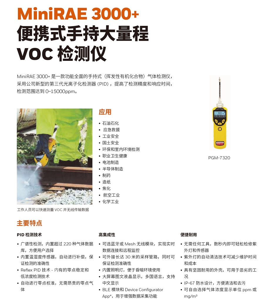MiniRAE 3000+是一款功能全面的手持式(揮發(fā)性有機(jī)化合物)氣體檢測(cè)儀,采用公司新型的第三代光離子化檢測(cè)器(PID),提高了檢測(cè)精度和響應(yīng)時(shí)間,檢測(cè)范圍達(dá)到0-15000ppm