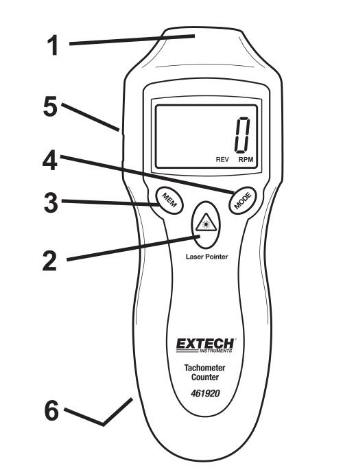 7.儀器掉,按 MEM (內(nèi)存) 按鈕以記得最大、 最小和最后 rpm值。