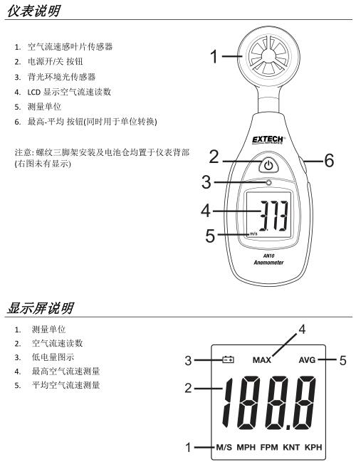 2. 再一次按下最高‐平均 按鈕可顯示儀表啟動后所測量記錄之平均空氣流動速率(AVG)讀數(shù)。AVG 標志會顯示于 LCD 頂部。