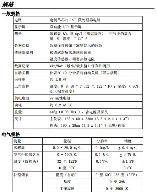 DO210溶解氧/溫度測定儀,該儀表可以同時顯示溶解氧和溫度或空氣中的氧含量和溫度。測量單位包括 mg/l(溶解氧)、%(空氣中的氧含量)和 oC/oF(溫度)。氧氣由遙感傳感器測量,該遙感傳感器還包含可測量空氣溫度的熱電阻。具備工作高度和鹽度補償(%)、數(shù)據(jù)保持、自動關(guān)機和 Min/Max(最大/最小值)記錄等先進功能。
