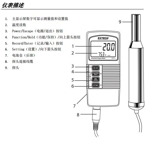 完成帶有膜和13英尺(4米)電纜的DO探頭,兩個備用更換膜,電解液,9V電池和軟殼