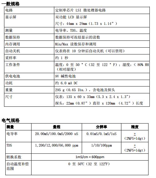 配有電導(dǎo)電池和39“(1m)電纜,9V電池和軟殼