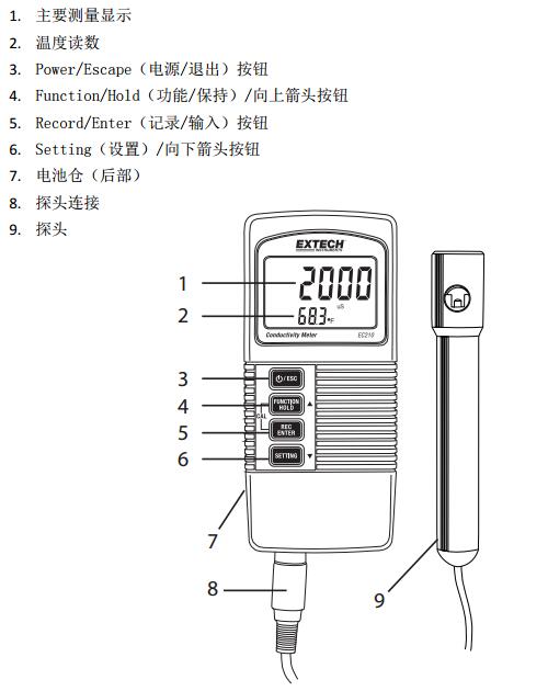 8. 按下并按住 FUNCTION 按鈕至少 2 秒鐘將返回電導(dǎo)率測量模式。