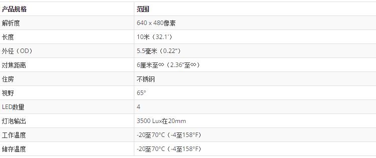 HDV-5CAM-10F是與HDV600 VideoScope系列一起使用的可選相機(jī)。這款具有長(zhǎng)景深鏡頭的5.5mm相機(jī)頭,具有65°的視野。十米半剛性電纜長(zhǎng)度。最小對(duì)焦距離為0.59英寸(15毫米)。