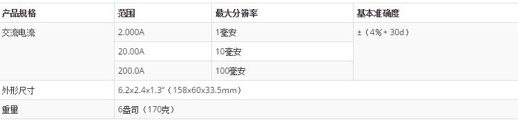 ? 測量交流電流的三個手動選擇量程包括 2A、20A和 200A