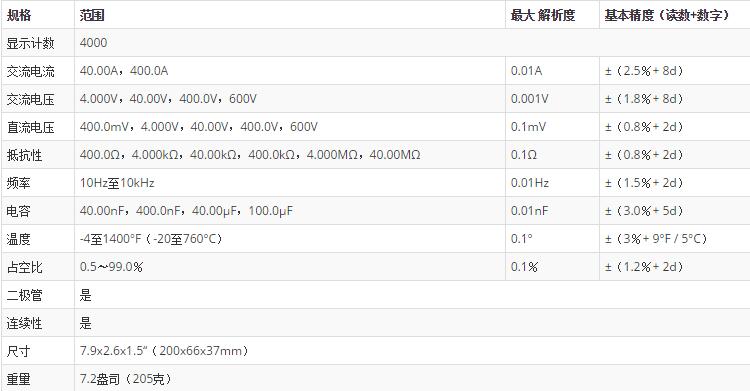 交流電流,交流/直流電壓,電阻,頻率,電容,溫度,占空比,二極管和連續(xù)性