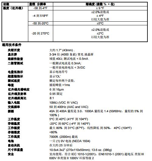 EX810 鉗表此計可測量交流/直流電壓、交流電流、電阻、電容、頻率、二級管測試、連續(xù)性、以及非接觸式紅外溫度。 正確的使用和照顧這個表將提供多年可靠的服務。
