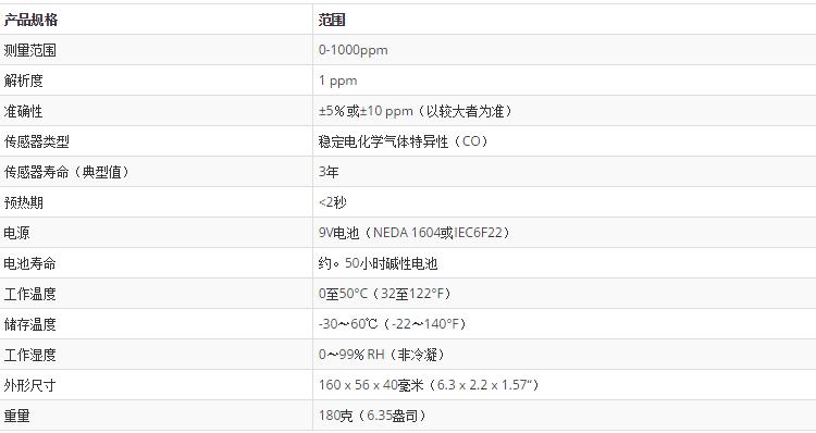檢查co級(jí)別是否像在C010型上按下1個(gè)按鈕一樣簡(jiǎn)單,測(cè)量高達(dá)1,000 ppm。聲音指示器以35ppm開(kāi)始增加音調(diào)。co的濃度越高,報(bào)警器的聲音越快。超過(guò)200 ppm時(shí),報(bào)警器將持續(xù)發(fā)出聲音。顯示屏上的背光可用于低光區(qū)域。附加功能包括:最大保持,數(shù)據(jù)保持和自動(dòng)關(guān)機(jī)。儀表配有9伏電池,保護(hù)套和外殼。