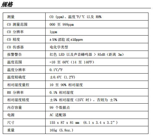 5. 按住 SET 按鈕 3 秒可保存并返回正常測量模式。報警觸發(fā)后,LED 將閃爍紅色,即便已經(jīng)選擇“蜂鳴聲關(guān)閉”也一樣。報警狀態(tài)下要想消除蜂鳴聲,請同時按SET 和 MODE。紅色 LED 將繼續(xù)閃爍,直至環(huán)境 CO 水平不再高于默認(rèn)值或是用戶選擇的報警級別。未來使用中應(yīng)記得重新激活蜂鳴器。