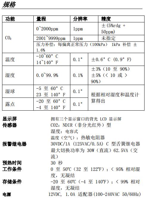 LCD 顯示屏可同時顯示 CO2 濃度、相對濕度和溫度(空氣溫度、露點(diǎn)溫度或濕球溫度)